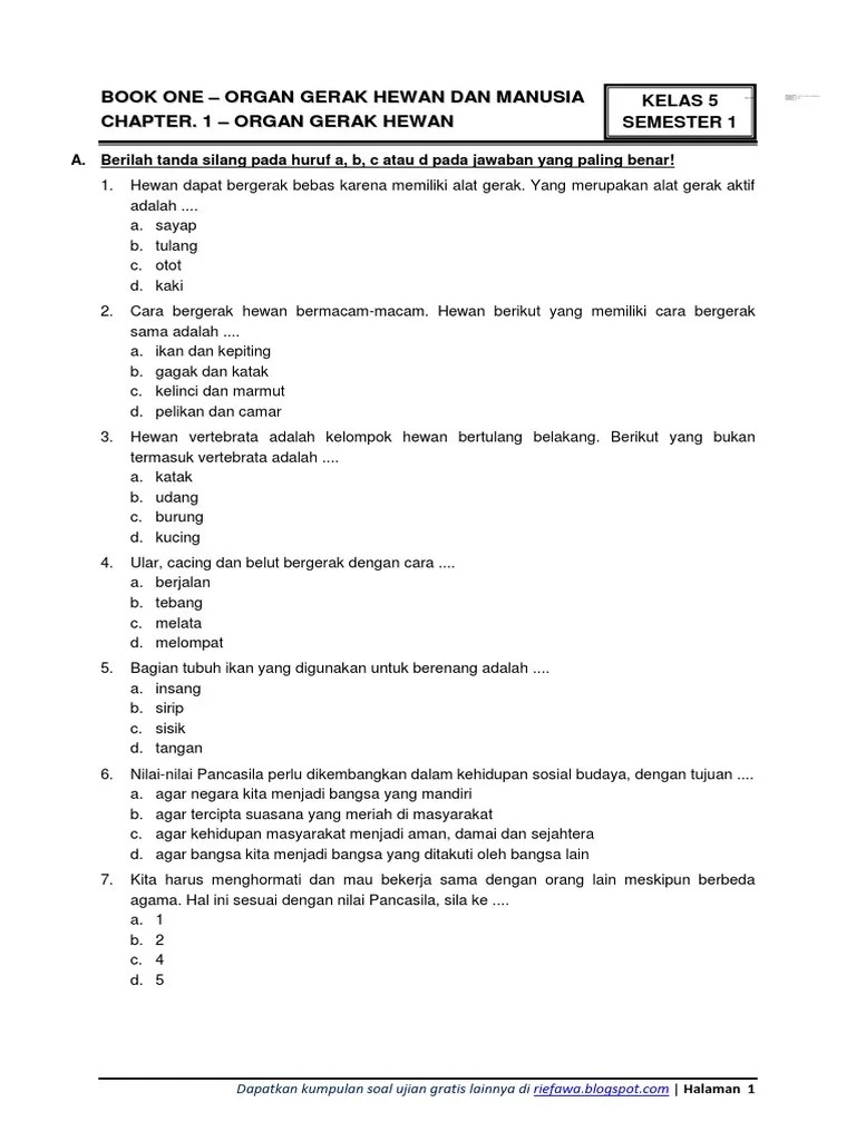 Book one organ gerak hewan dan manusia kelas 5. Soal ulangan harian sd kelas 1 per tema. Soal uh kelas 5 sd/mi semester 1 kurikulum 2013 terdapat 5 tema yakni tema 1, 2, 3, 4 dan 5 yang diantaranya sebagai berikut: Soal kelas 5 tema 2 k13 revisi download soal . Selamat datang kembali di blog ahzaanet, kita berlanjut pada soal semester satu kelas 5 (lima) sd tema 1 subtema 1,organ gerak hewan. Soal k13 revisi 2017 by joel2liant. Buku tematik kelas 5 tema 1 organ gerak hewan k13 revisi 2017. Il y a 8 jours. Soal kelas 5 tema 1 k13 revisi download soal; Download contoh latihan soal tematik kelas 5 tema 1 subtema 2 "manusia dan lingkungan" beserta kunci jawaban/ pembahasan (kurikulum 2013 revisi 2017). Karena dengan adanya latihan soal ulangan tematik kelas 5 tema 1 subtema 1 semester 1 kurikulum 2013 tersebut bermanfaat untuk mengasah keterampilan . Hewan dapat bergerak bebas karena memiliki alat gerak. Drilling ulangan harian tematik semua tema sd kelas 4.